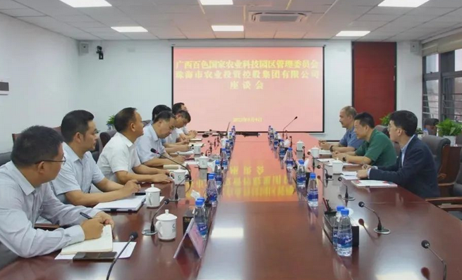 5月9日上午,广西百色国家农业科技园区管理委员会主任王晓一行到ky官方网站农产品物流园调研参观并在农控集团会议室交流座谈。农控集团党委书记、董事长张凡,副总经理肖军参加座谈会。